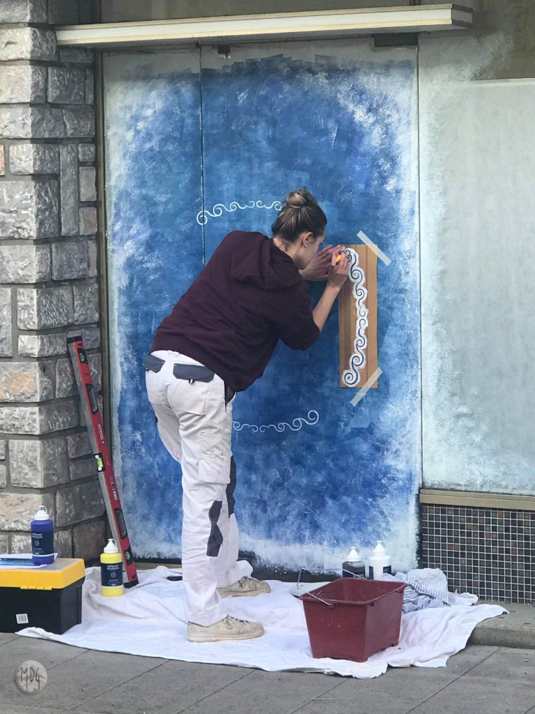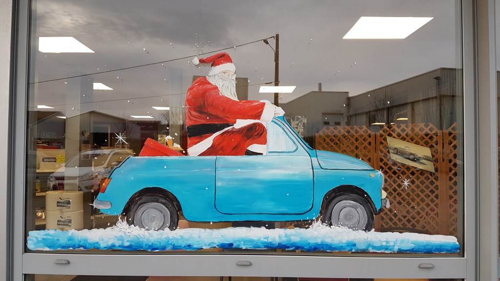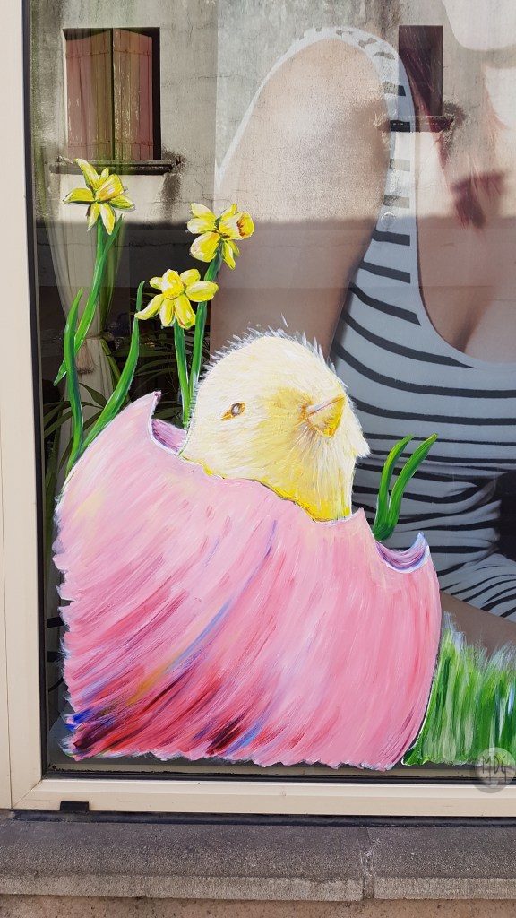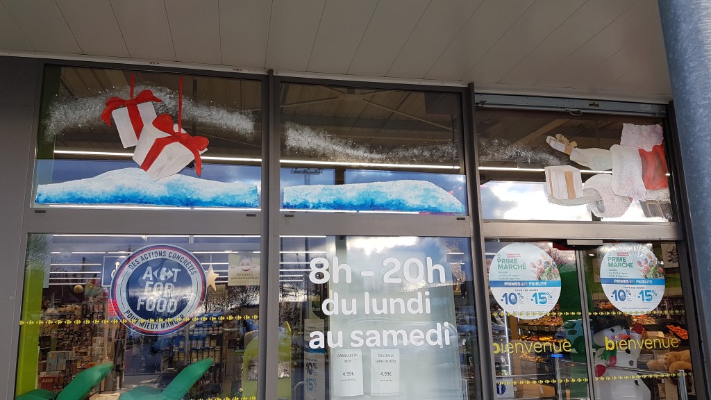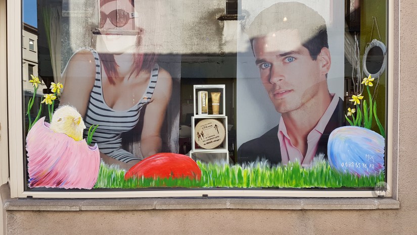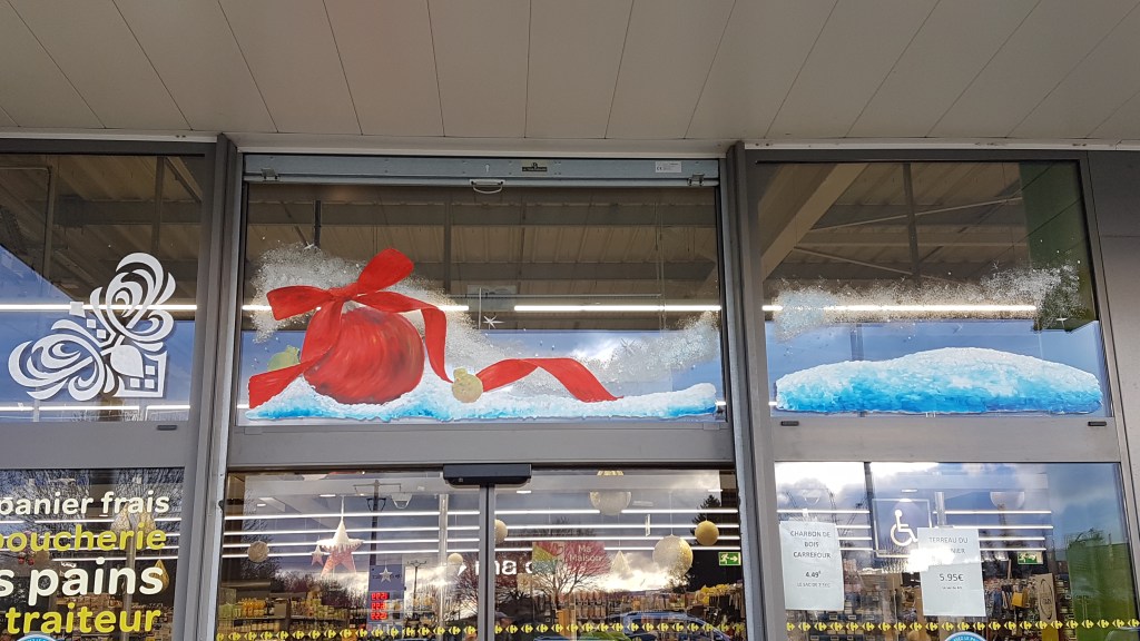 Je propose aux commerçants de peindre des tous sortes de thèmes et toute l’année sur les vitrines.
